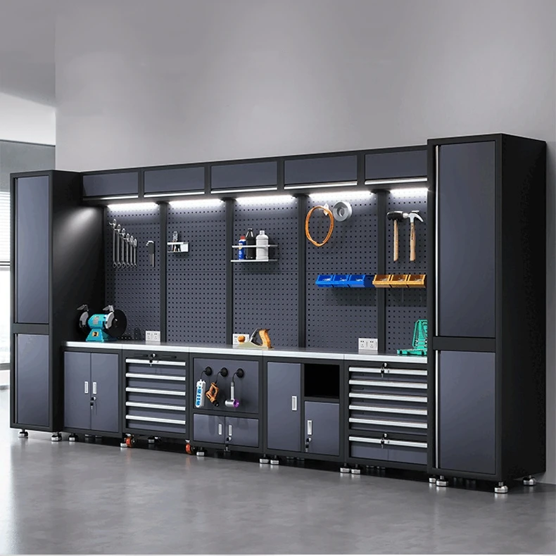 Constructed with heavy-gauge cold-rolled steel (thickness: 0.5-1.0mm), this mechanic workbench storage system is built to withstand the rigors of daily use in tough environments. The sturdy steel frame ensures durability and resistance to wear and tear, providing a long-lasting solution for tool storage. This high-strength steel is designed to support heavy-duty tools and equipment, making it ideal for auto repair shops, garages, and industrial workstations.