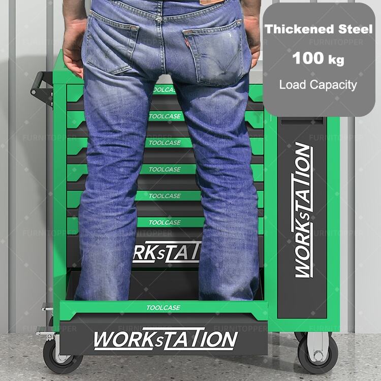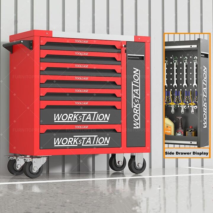 Each of the 7 drawers features smooth ball‑bearing slides for effortless access and heavy‑load support, while the central locking system keeps your tools safe when unattended. Equipped with premium caster wheels and ergonomic handles, this cart moves easily across garage or workshop floors, making tools quickly accessible wherever you need them.